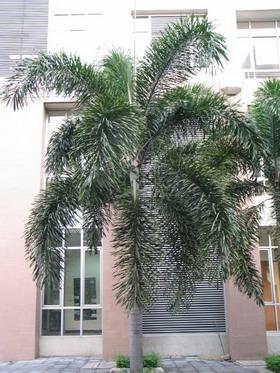 ลักษณะทั่วไป: เป็นปาล์มตนเดี่ยว ลำต้นป่องเล็กน้อย สุงได้ถึง 15 เมตร รูปใบพวง ใบย่อยเป็นกระจุกแผ่ออกทุกทิศทางฟูเป็นพวงคล้ายหางหมาป่าช่อดอกออกใต้คอ ผลกลมรี เมื่อสุกสีส้มแดง ประโยชน์: ปลูกเป็นไม้ประดับสวน ทั่วไป