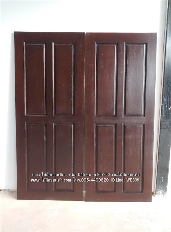 ประตูไม้สักบานเดี่ยว รหัส D45 แบบ4ลูกฟักเเนวตั้ง