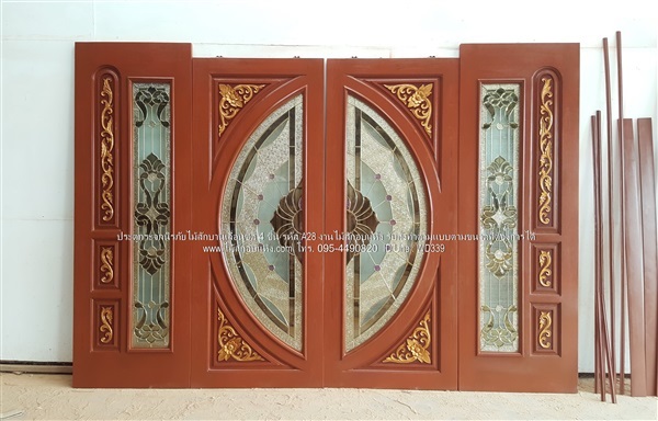 #ประตูไม้สักกระจกนิรภัยชุดบานเปิด4ชิ้น-7ชิ้น