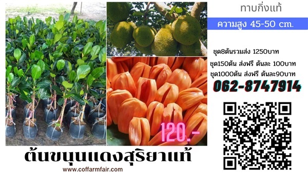 ส่งฟรีต้นขนุนแดงสุริยาทาบกิ่งแท้ ต้นละ90บาท ชุด150ต้น ส่งฟรี