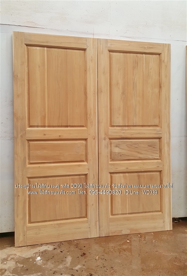ประตูไม้สักบานคู่ รหัส DD90 ลาย3ลูกฟักเรียบ
