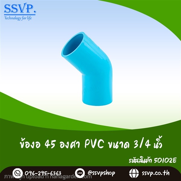 ข้องอ 45 องศา PVC ขนาด 3/4" รหัสสินค้า 50102-E