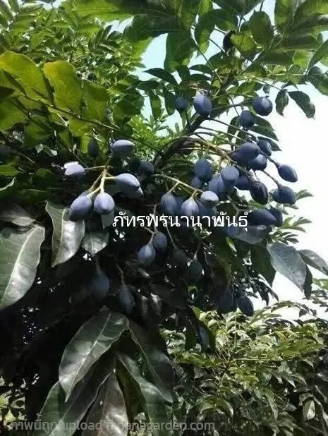ผล : ออกเป็นช่อ ผลรูปทรงกระสวย หัวท้ายแหลม ผิวเปลือกบาง ผิวเปลือกนอกเรียบ ผลอ่อนมีสีเขียว ผลสุกจะเปลี่ยนเป็นสีม่วงดำ