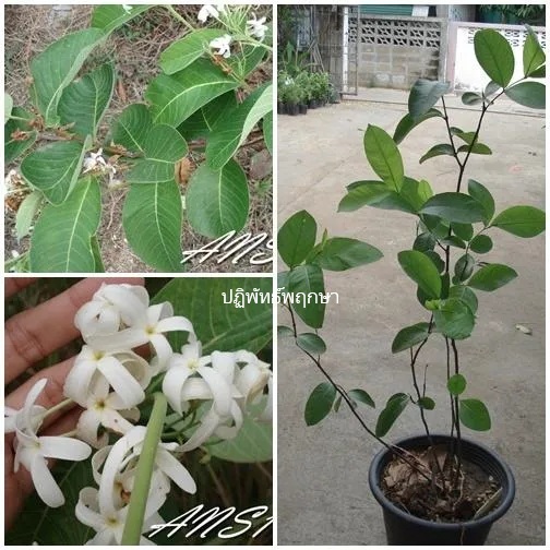 ดอก : ออกเป็นช่อที่ปลายยอด ดอกสีขาว กลิ่นหอมตลอดวัน หอมเหมือนกลิ่นมะลิ ออกดอกตลอดทั้งปี ดอกบานได้นานเกือบสัปดาห์