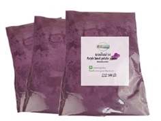เมล็ดของต้นมันม่วง : ขนาดเล็กสีดำ ลักษณะค่อนข้างแบน ด้านหนึ่งเรียบ อีกด้านจะเป็นเหลี่ยม