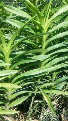 ใบ    เรียงสลับซ้ายขวาเป็นแผงชิดกันแน่นใบห่อเข้าหากันปลายโค้งลงเล็กน้อยมองดูคล้ายเขาแกะ แผ่นใบบางและเหนียว ใบรูปแถบขนาดใบยาว 10-15 ซม. ก้านช่อดอก ตั้งตรงยาวประมาณ 15-20 ซม.