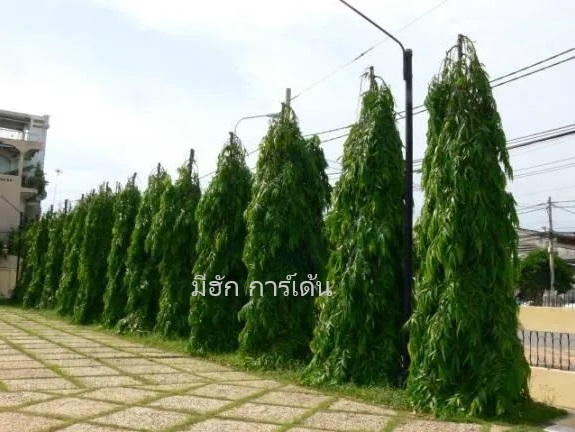 - ปลูกในพื้นที่แคบ หรือปลูกเป็นแนวขอบรั้ว ช่วยบังลม บังสายตา ฝุ่น และช่วยป้องกันเสียงรบกวนจากภายนอกได้บางส่วน