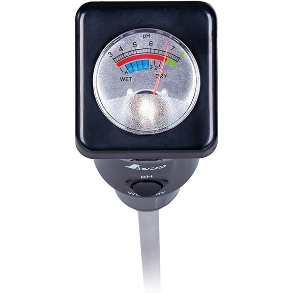 เครื่องวัด pH และความชื้นดิน รุ่นขาวัดยาวพิเศษ 25 ซม. ยี่ห้อ Shinwa จากญี่ปุ่น รุ่น 72795 ที่ออกแบบมาให้มีขาวัดที่ยาวขึ้น และบางลง แต่มีความแข็งแรง ด้วยขาวัดที่มีความยาวถึง 25 ซม. หรือเกือบ 10 นิ้ว ทำให้สามารถวัดค่าดินได้ลึกถึงบริเวณรากของต้นไม้ รุ่นนี้ออกแบบมาให้ตรวจสอบค่า pH หรือความเป็นกรดในดินได้อย่างแม่นยำถึงชั้นราก ซึ่งมีผลโดยตรงสำหรับการดูดซึมธาตุอาหารของพืช ช่วยให้สามารถดูแล ปรับปรุงดินได้อย่างทันท่วงที เพราะถ้าดินเป็นกรดรุนแรงจะทำให้มีธาตุพวกอะลูมิเนียม แมงกานีส และเหล็ก ละลายออกมาอยู่ในน้ำในดินมากเกินไป จนเกิดเป็นพิษขึ้นแก่พืชที่ปลูกได้ แมงกานีสและเหล็กแม้จะเป็นธาตุอาหารพืชที่สำคัญ แต่พืชต้องการในปริมาณน้อย ถ้ามีสะสมอยู่ในดินมากจนเกินไปก็จะเกิดเป็นพิษขึ้นกับพืชได้ ดินที่มีค่าพีเอช (pH) ต่ำกว่า 4.5 ลงไปเรามักพบปัญหาดังกล่าว เป็นต้น
