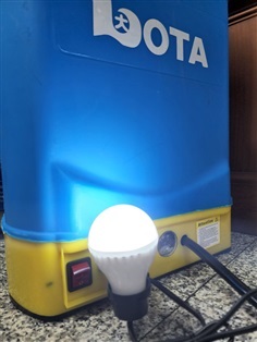 ใช้ไฟจากแบตเตอรี่ขนาด 12 V 1.1A สามารถชาร์จไฟใหม่ได้ มีหัวพ่นให้เลือก3แบบ