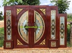 ประตูกระจกนิรภัยไม้สัก ชุดบานเปิด รหัส GBBB 02