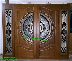 ประตูกระจกนิรภัยไม้สัก ประตูไม้สักทอง รหัส GBBB 56