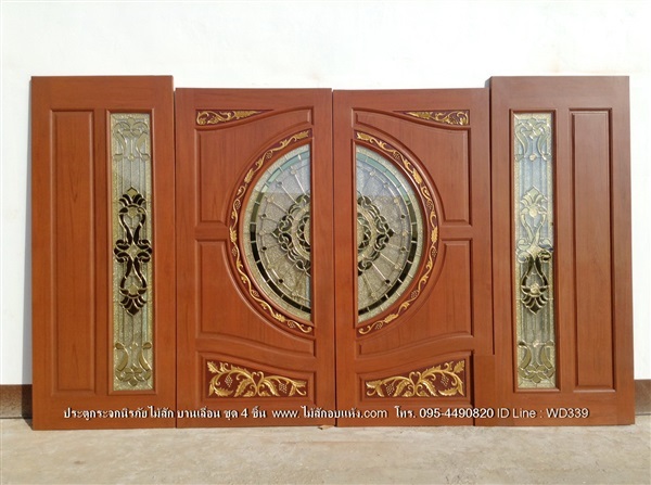 #ประตูไม้สักกระจกนิรภัยชุดบานเปิด4ชิ้น-7ชิ้น