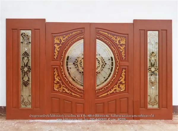 ประตูไม้สักกระจกนิรภัยบานเลื่อน ชุด4ชิ้น A89 งานไม้สักอบแห้ง