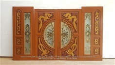 ประตูไม้สักกระจกนิรภัยบานเลื่อน ชุด4ชิ้น A104 แกะมังกร+ปลา