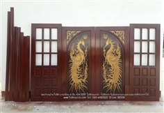 ชุดประตูบ้านไม้สัก บานเลื่อน 7 ชิ้น DD53 เเกะลายหงส์คู่
