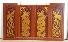 ประตูไม้สักกระจกนิรภัยบานเปิด ชุด 4 ชิ้น A13 กระจกบานใหญ่