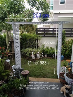 ขนาดซุ้ม ยาว 200 สูง 200 ลึก 50 cm. วัสดุupvc ไม่ผุ ปลวกไม่กินแน่นอนค่ะ ทางร้านจำหน่ายแผงระแนงUPVC ชั้นวางกระถางต้นไม้ ชั้นเสียบอุปกรณ์ไม้ถูไม้กวาด ฉากระแนงบังตา รั้วUPVC ซุ้มสำเร็จรูป กล่องครอบเอนกประสงค์ รั้วล้อมต้นไม้ รั้วสีขาว รั้วขาปัก รั้วขาตั้ง ทนน้ำ ทนแดด ปลวกไม่กิน สีไม่ลอกร่อน สอบถามราคา , Line @lhc1983n, Fb: https://www.facebook.com/upvcdecor, Line ID:upvcdecor /Line ID:woodboom Tel:099-1152259,089-1696394,081-5835100, www.upvcdecor.com