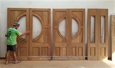 #ประตูไม้สักกระจกนิรภัยคู่ ไม้สักอบแห้ง 17,000บาท/ทำสี 19,800บาท