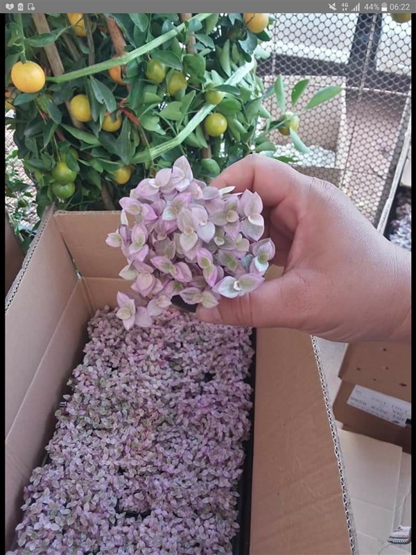 ริบบิ้นชาลีด่าง Callsia repen pink lady ต้นริบบิ้นชาลี ใบสีชมพู ม่วง ราคา 35-40 บาท กระถาง 2 นิ้ว และราคายกถาด 50 กระถาง