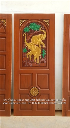 ประตูไม้สักบานเดี่ยว รหัส D81 ,D89 เเกะลายมังกร,หงส์ เเละปลา