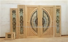 ประตูกระจกนิรภัยไม้สักบานเปิดชุด7ชิ้นA39 เเกะลายหง์เรือสำเภา
