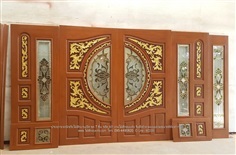 ประตูไม้สักบานคู่ รหัส DD82 เเกะสลักลายดอกไม้
