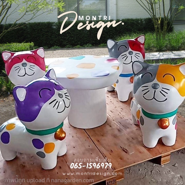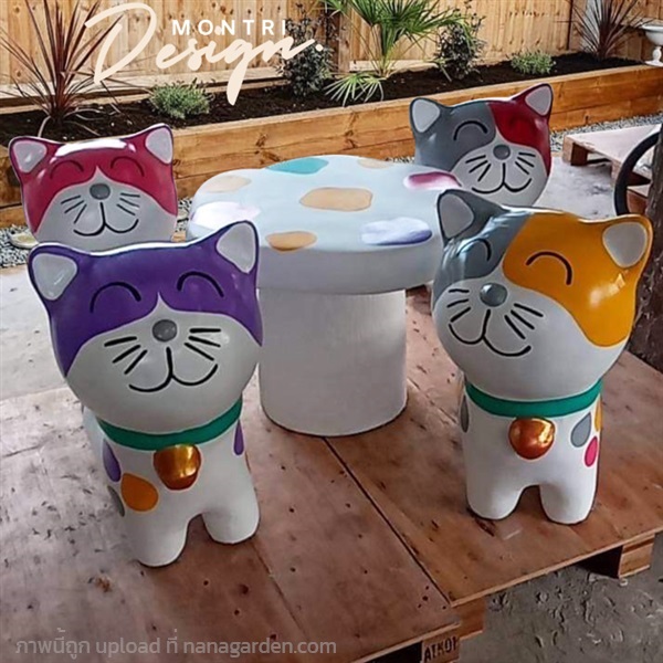 ชุดโต๊ะปูนรูปน้องแมว สุดน่ารัก โต๊ะเก้าอี้รูปน้องแ