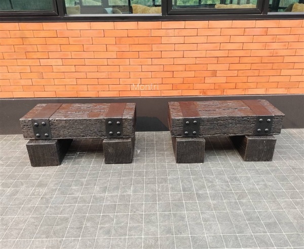 เก้าอี้ไม้หมอน เก้าอี้ไม้หมอนรถไฟ ไม้หมอนรถไฟ โต๊ะเก้าอี้สนาม โต๊ะปูนปั้นลายไม้ งานสวยเรียบหรู เสมือนไม้จริง ทนแดด ทนฝน