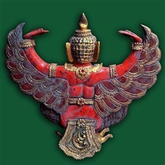 - ผ่านพิธีเบิกเนตรแล้ว ครุฑไม้สักทองเก่า