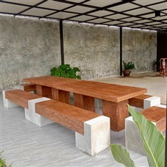 ชุดโต๊ะสนามไม้หมอน ชุดโต๊ะไม้หมอนรถไฟ ขนาดยาว 3.6 เมตร นั่งได้ 18-20 ท่าน งานดีไซน์โดยคนไทย