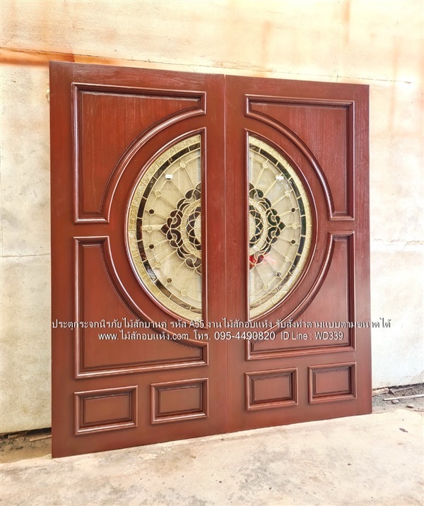 ประตูไม้สักกระจกนิรภัยบานเปิดคู่ รหัส A55