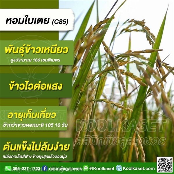 พันธุ์?ข้าว ข้าวเจ้า หอมใบเตย C85 ข้าวนาปี