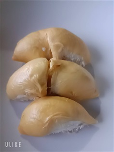 ทุเรียนพันธุ์พวงมณี เนื้อสีเหลืองเข้ม เนื้อเหนียวละเอียด รสชาติและกลิ่นหอมหวานมากค่ะ