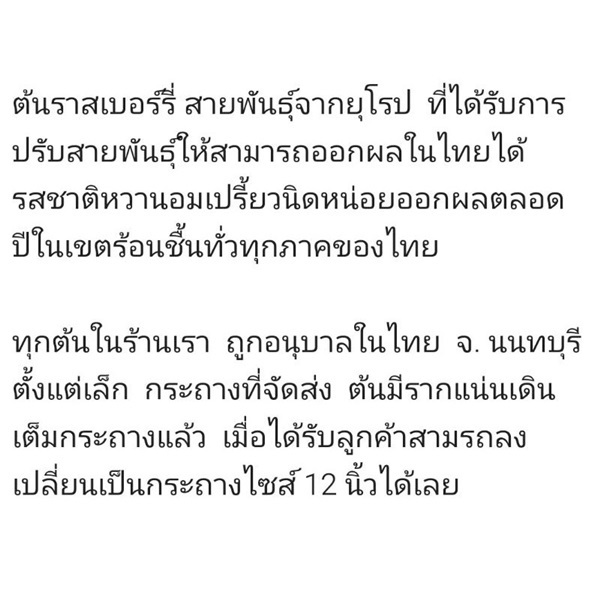 ต้นราสเบอร์รี่ สายพันธุ์จากยุโรป ที่ได้รับการปรับสายพันธุ์ให้สามารถออกผลในไทยได้ รสชาติหวานอมเปรี้ยวนิดหน่อยออกผลตลอดปีในเขตร้อนชื้นทั่วทุกภาคของไทย
