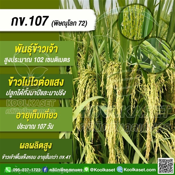 พันธุ์?ข้าว(กข107 (พิษณุโลก 72)ข้าวนาปีไวแสง หอม