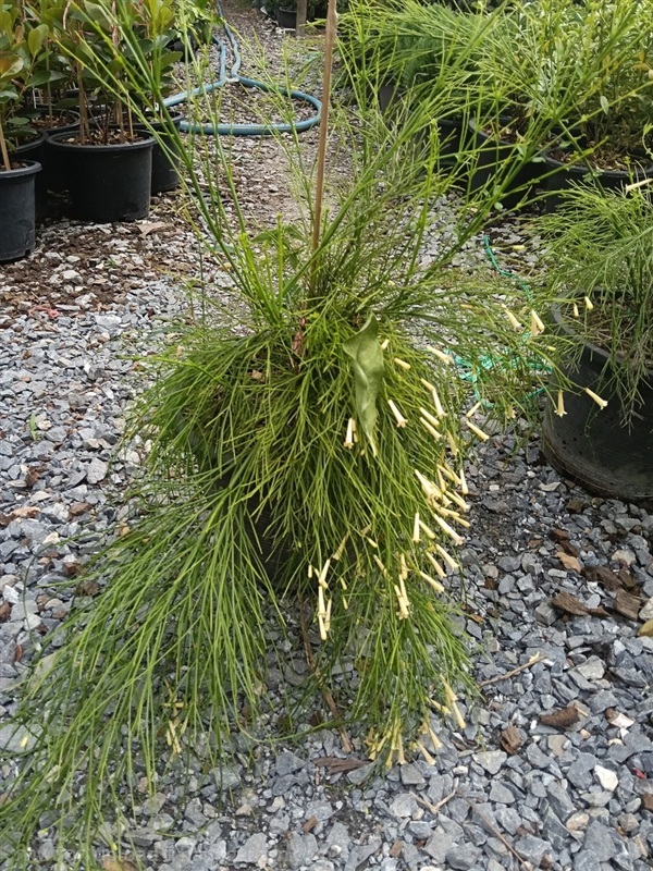 ประทัดจีนดอกสีขาว หรือประทัดเศรษฐีดอกขาว ไม้พุ่มเตี้ย ออกเป็นกอพุ่มแน่น ต้นสูงได้ถึง 2.00 เมตร ตามลำต้นมีลักษณะเป็นข้อปล้อง ดอกประทัดจีน มีลักษณะคล้ายกับประทัดทั่วไปคือดอกจะเป็นหลอดสีขาวอมเหลือง ประทัดจีนดอกสีขาวกระถาง 11 นิ้ว ต้นสวยและแข็งแรง