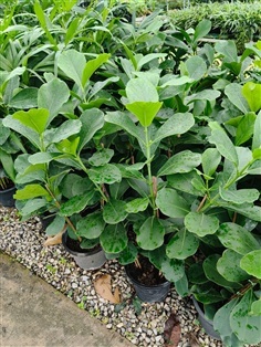 ใบเป็นใบขนาดใหญ่และหนา มีการเกาะติดอยู่กับต้นได้นาน (ข้อมูลจากการปลูก 2 ปีมาแล้ว ยังไม่มีการร่วง) จึงเป็นพันธุ์ไม้ที่มีข้อดีที่ไม่ต้องเก็บกวาดใบมาก