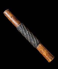 ตะกรุดลป.ทิม แผ่นทองแดงหนาม้วนหุ้มตะกั่ว ชิ้นนี้ได้ถักเชือกลงรักไว้ด้วย ถือเป็นมวลสารศักดิ์สิทธิ์ สภาพสวยสมบูรณ์ ผิวเก่าธรรมชาติ ผ่านการใช้งานจริง
