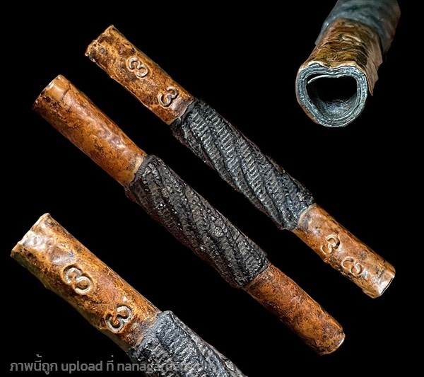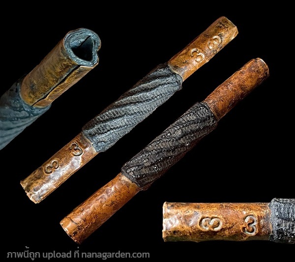 ตะกรุดลป.ทิม แผ่นทองแดงหนาม้วนหุ้มตะกั่ว ชิ้นนี้ได้ถักเชือกลงรักไว้ด้วย ถือเป็นมวลสารศักดิ์สิทธิ์ สภาพสวยสมบูรณ์ ผิวเก่าธรรมชาติ ผ่านการใช้งานจริง