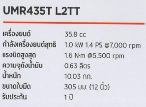เครื่องตัดหญ้าสะพายบ่า Honda UMR435T L2TT เครื่องยนต์4จังหวะ คันเร่งแบบไกปืน เพิ่มความปลอดภัยและสะดวกในการใช้งาน สามารถถอดประกอบชุดสายอ่อนกับเครื่องยนต์ได้อย่างง่ายดาย ใช้บูช 5 ตัวประกอบภายในก้าน ยืดอายุการใช้งาน และลดแรงสั่นสะเทือน แท่นเครื่องแบบสปริงช่วยลดแรงสั่นสะเทือน พร้อมสต๊อปเปอร์กันความร้อน เบาะรองหลังและเบาะรองไหล่ มีขนาดเหมาะสม มีใบมีดให้เลือกใช้ทั้งแบบยาวมาตรฐาน และแบบไนลอนสายเอ็น สินค้ามาตรฐานคุณภาพของแท้ Honda เป็นตัวแทนจำหน่ายอย่างถูกต้อง รับประกันสินค้าของแท้ 100%