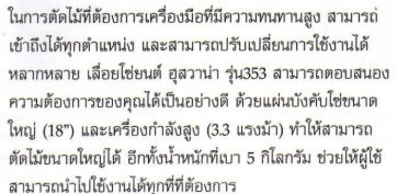 เลื่อยยนต์ฮุลวาน่า 353 เป็นเลื่อยยนต์สำหรับมืออาชีพ ซึ่งมีกำลังสูง น้ำหนักเบา ขนาดเล็ก และมีจุดศูนย์ถ่วงที่อยู่กลางทำให้ใช้งานได้อย่างมีประสิทธิภาพและง่ายต่อการใช้ สมาร์ทสตาร์และที่ปั่มน้ำมันง่ายต่อการเริ่มต้นการใช้งาน