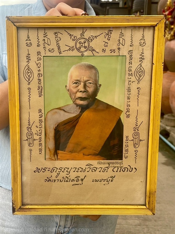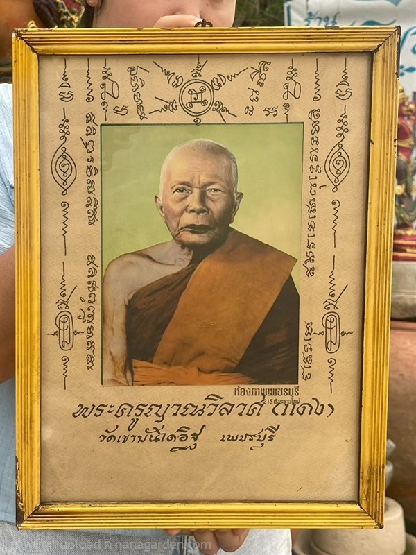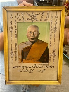 สภาพสวยสมบูรณ์ อยู่ในกรอบไม้เดิม แท้ทันหลวงพ่อ หลังภาพติดผ้ายันต์แดง