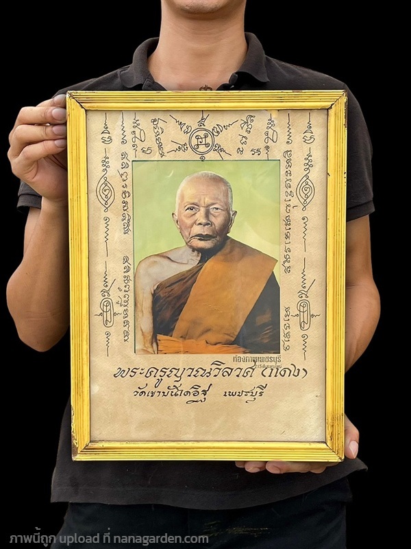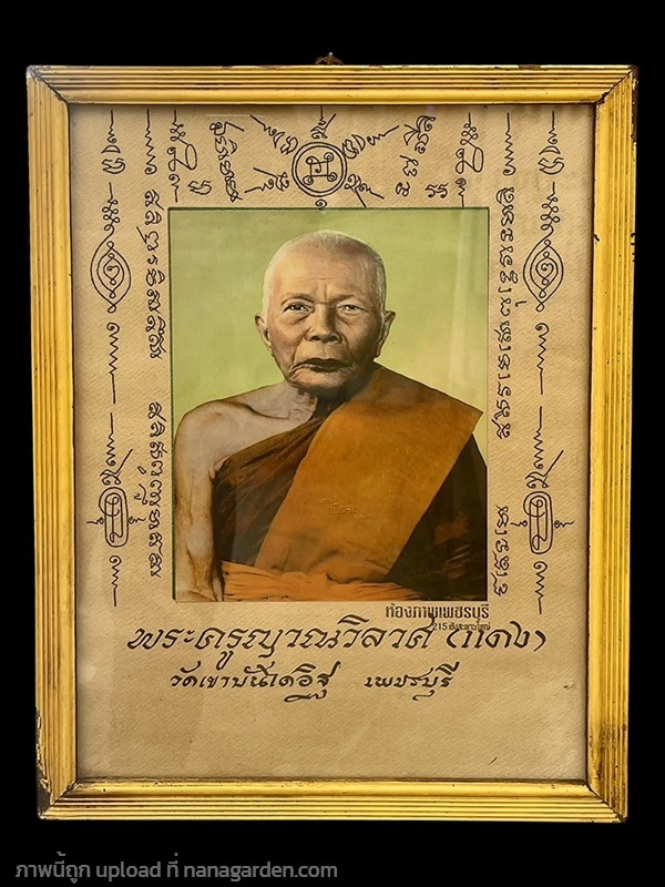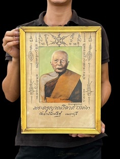สภาพสวยสมบูรณ์ อยู่ในกรอบไม้เดิม แท้ทันหลวงพ่อ หลังภาพติดผ้ายันต์แดง