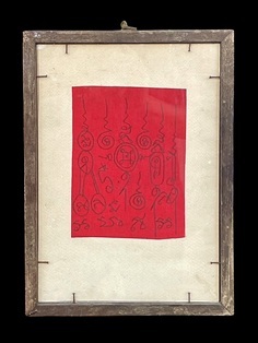 สภาพสวยสมบูรณ์ ปีพ.ศ. 2511 รับประกันแท้ หน้า-หลัง จารมหายันต์ครู (ขอมโบราณ) พุทธาภิเษกเดี่ยวและจารยันต์เองโดยหลวงพ่อแดง จัดสร้าง90บาน จำนวนตามอายุหลวงพ่อแดง ขนาด 20x29ซม. รวมกรอบ