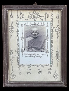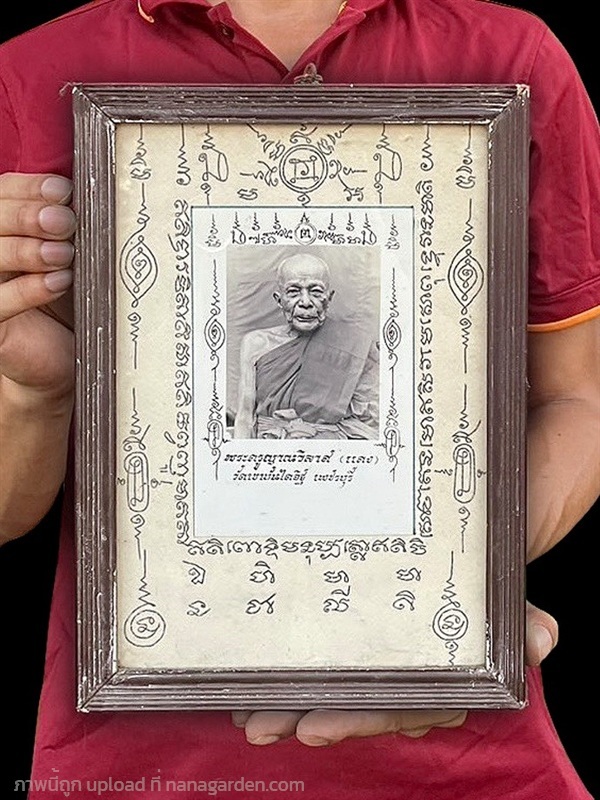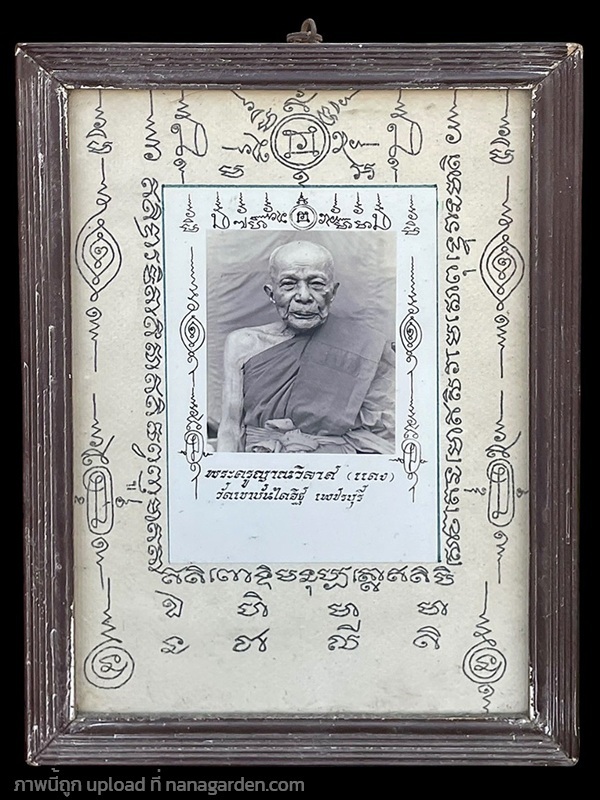 สภาพสวยสมบูรณ์ อยู่ในกรอบไม้เดิม แท้ทันหลวงพ่อ หลังภาพติดผ้ายันต์แดง
