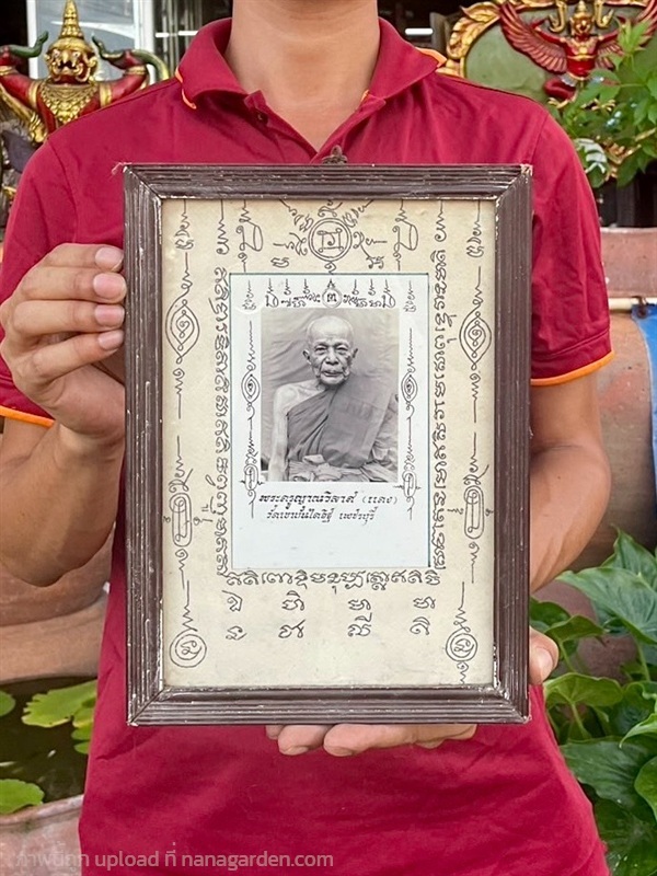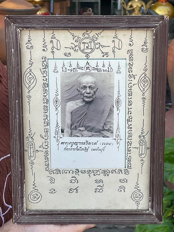 สภาพสวยสมบูรณ์ อยู่ในกรอบไม้เดิม แท้ทันหลวงพ่อ หลังภาพติดผ้ายันต์แดง