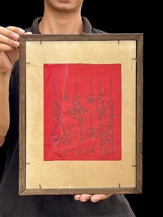 สภาพสวยสมบูรณ์ จีวรเหลือบสองสี ปีพ.ศ. 2516 รับประกันแท้ หน้า-หลัง จารมหายันต์ครู (ขอมโบราณ) พุทธาภิเษกเดี่ยวและจารยันต์เองโดยหลวงพ่อแดง จัดสร้างจำนวนตามอายุหลวงพ่อแดงในขณะนั้น ขนาด 28x38ซม. รวมกรอบ (บานใหญ่)
