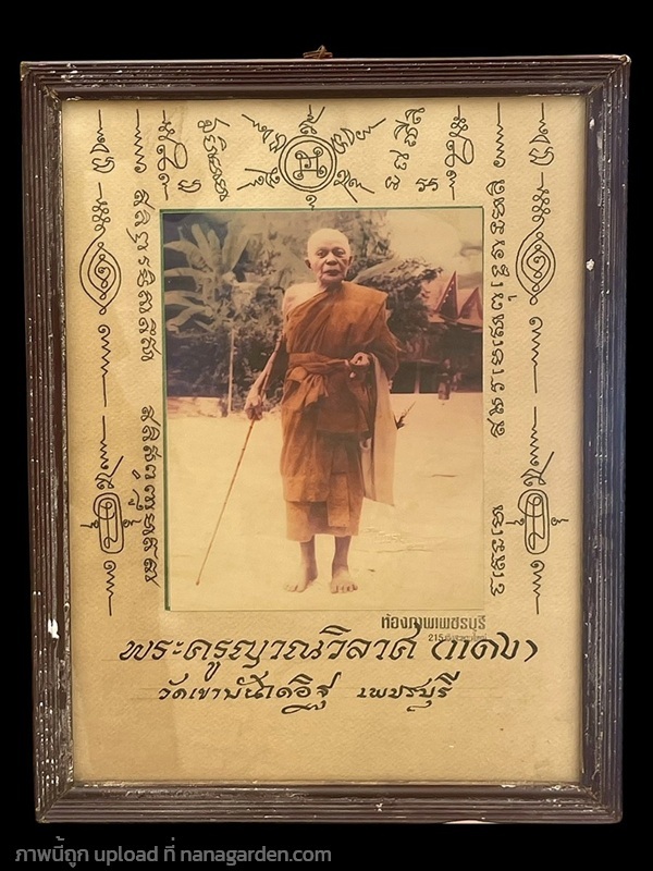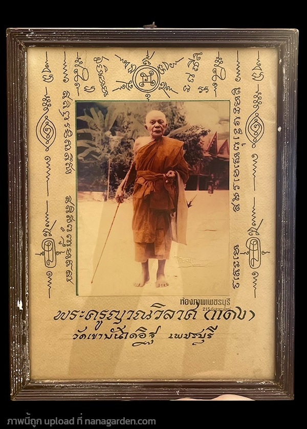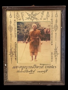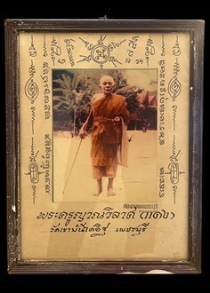 สภาพสวยสมบูรณ์ อยู่ในกรอบไม้เดิม แท้ทันหลวงพ่อ หลังภาพติดผ้ายันต์แดง