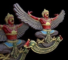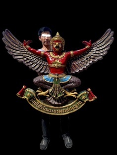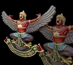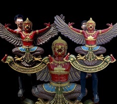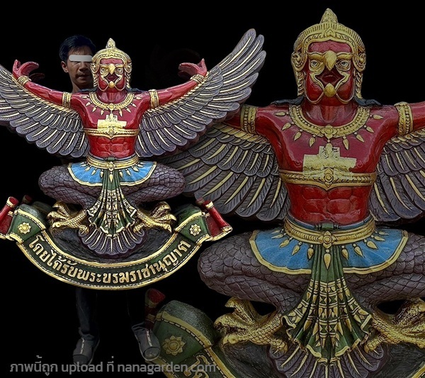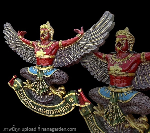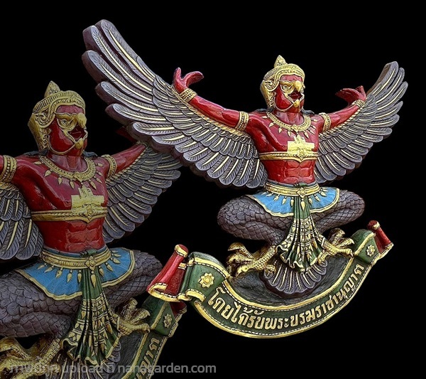 พญาครุฑ คือ องค์เทพกึ่งมนุษย์ มีลักษณะครึ่งคนครึ่งอินทรี เป็นพญาแห่งนกทั้งมวล และเป็นพาหนะของพระวิษณุ (พระนารายณ์) ทรงอิทธิฤทธิ์ พละกำลังมหาศาล ได้รับความเคารพนับถือในฐานะสัญลักษณ์แห่งอำนาจ ความเจริญรุ่งเรือง และการปกป้องคุ้มครอง