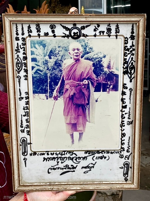 ภาพละเอียด ภาพสี โดยช่างศิลป์เพชรบุรี สำนักพิมพ์ ห้องภาพ เพชรบุรี สะพานใหญ่ (กระจกหน้าจารใหม่เพราะเมจิกเดิมจืดจางตามความเก่า) สภาพสวยสมบูรณ์ อยู่ในกรอบไม้เดิม แท้ทันหลวงพ่อ